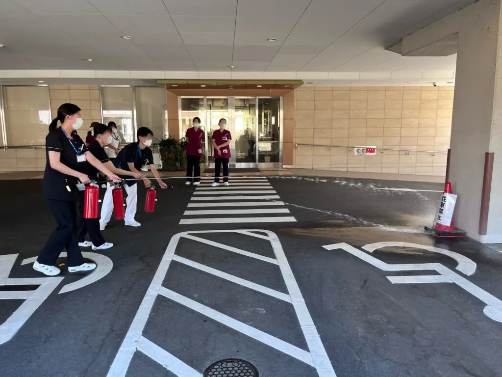 「ピン・ポン・パン」を意識しながら消火器使用方法を練習しました。